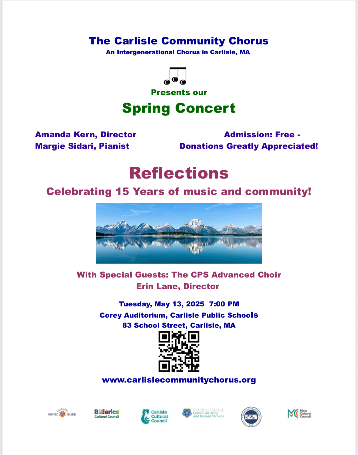 Please join us for the Carlisle Community Chorus Spring Concert on Tuesday, May 13 at 7PM in the Corey Auditorium with special guests, the CPS Advanced Choir under the direction of Erin Lane.