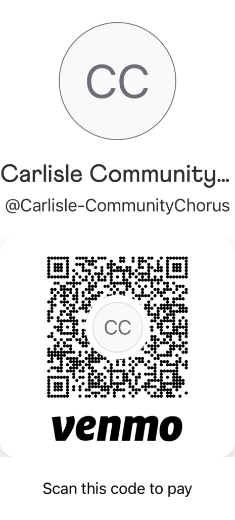The Carlisle Community Chorus is a non-profit organization with 501-3c status and relies on local grants, donations and membership dues to keep the organization running. The CCC thanks everyone for their generous support that help make it possible to continue to bring choral music and joyful singing to our local communities. All donations are tax deductible.