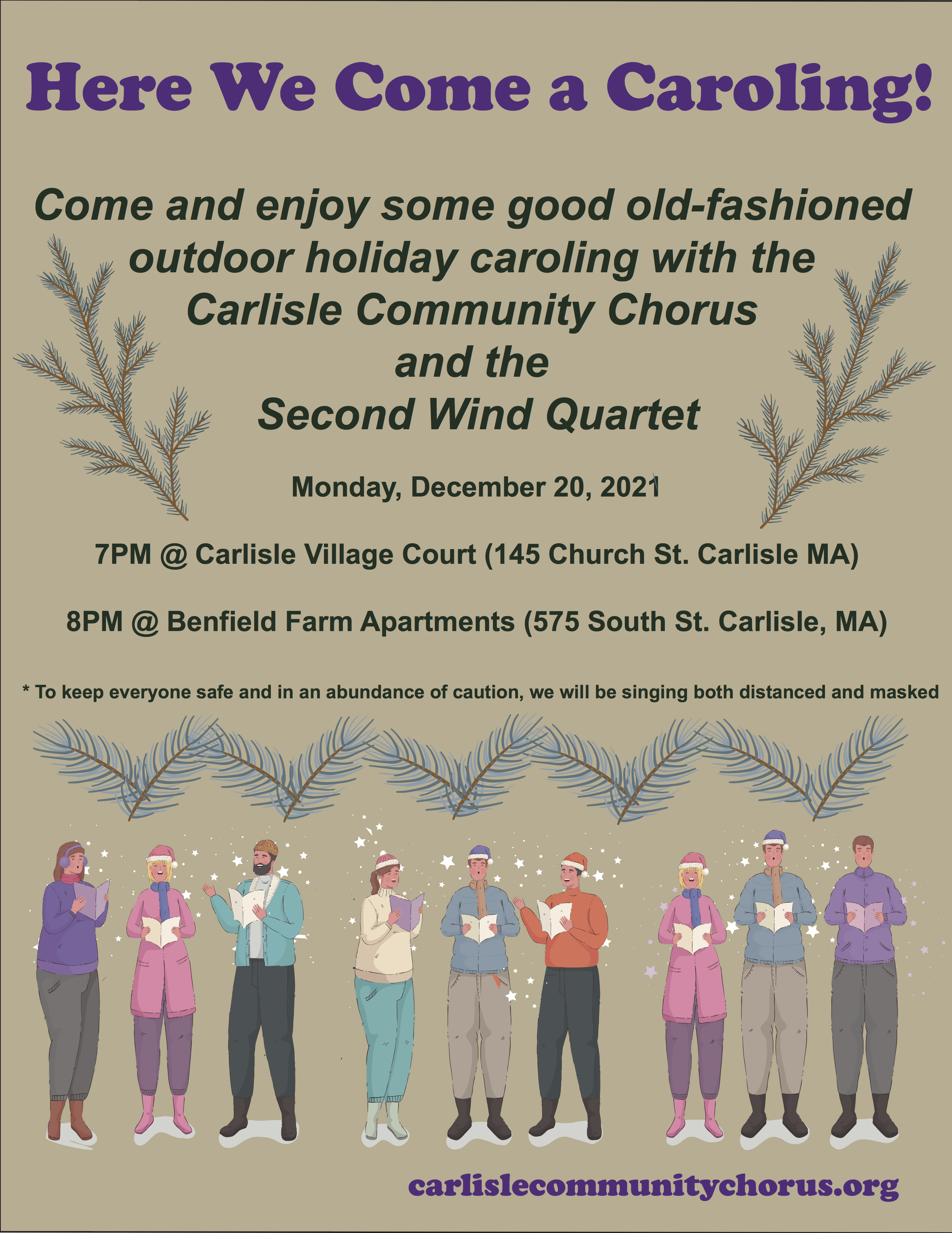 On behalf of the Carlisle Community Chorus board of directors, I’m hoping you’ll come back and join us this fall. None of us can know what the future will bring, but as of this summer, we are hoping to be back in the new rehearsal room this fall and singing together again. We will be kicking off our new season with a gathering of the Carlisle community and neighbors for a potluck picnic and a fun “Singing Out Summer” to warm up those pipes on September 1st on the Gleason Library Lawn. From 6 to 8:00pm. Come and say hey!